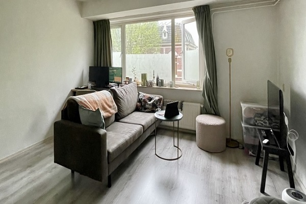 Indeling appartement; Entreehal, voorzien van separaat toilet en meterkast en bergkast. Ruime badkamer voorzien van douche, wastafel en tevens een wasmachine aansluiting. De slaapkamer is circa 7m2. De woonkamer is licht en heeft een half open keuken. Deze is voorzien van eenvoudig keukenblok. Verder heeft dit appartement nog een individuele kelder berging en een gemeenschappelijke fietsenberging. NB. Woningdelers komen helaas voor deze woningen niet in aanmerking.