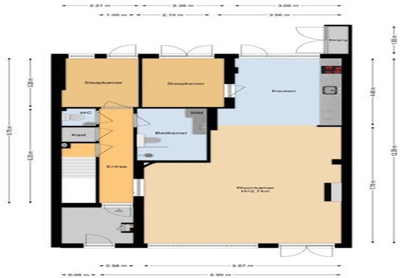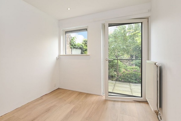 Indeling: begane grond appartement gemeenschappelijke hal, entree appartement, woon-eetkamer met deur naar de tuin aan de voorzijde, volledig ingerichte keuken, 1e slaapkamer met openslaande deuren naar de achtertuin, zonnige verzorgde achtertuin, toilet, 2e slaapkamer, badkamer met douche, toilet en wastafel. GEEN HUISDELEN