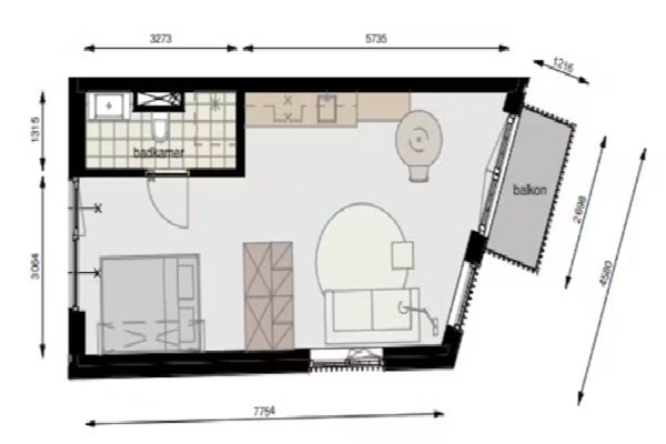Deze hoekstudio, gelegen op de tweede verdieping van het pand, is 38 vierkante meter groot en beschikt over een balkon van 3,3 m2. De studio is volledig uitgerust en ingericht met een bed, een slaapbank, een kast, een eettafel en stoelen. De studio wordt tevens geleverd met handdoeken en beddengoed. Het gebouw is zeer duurzaam en milieuvriendelijk. Uw studio kan zichzelf koelen en verwarmen met de geïnstalleerde Airconditioning. De gebruikte energie komt van de zonnepanelen op het dak. Het ontwerp van dit pand heeft een zeer moderne insteek, waardoor het een zeer chique uitstraling heeft. •Koppels zijn welkom, maar delen met een vriend is niet toegestaan.