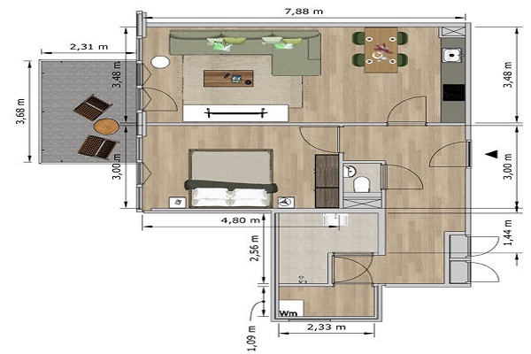 Indeling 4e Verdieping: Hal met toegang tot het moderne, separate toilet. Woonkamer: Royale living met grote raampartijen en toegang tot het balkon. Slaapkamer: Ruim en rustig gelegen. Badkamer: Luxe afwerking met inloopdouche en wastafel. Extra’s: Inpandige berging met wasmachineaansluiting én een externe berging in de kelder.