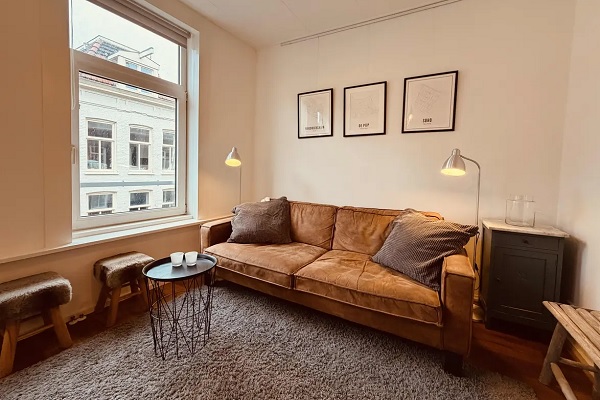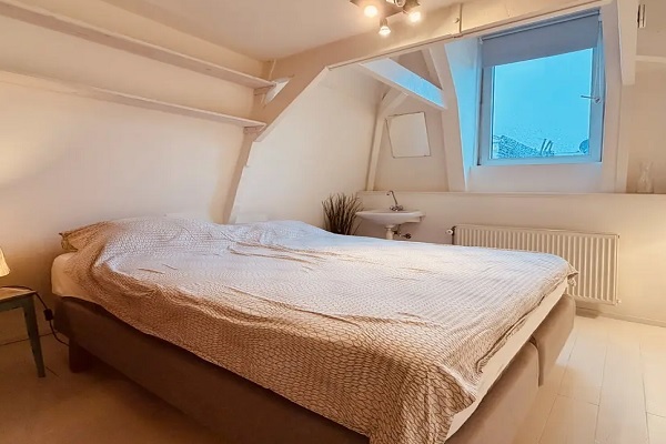 GESCHIKT VOOR MAXIMAAL 2 PERSONEN Begane grond en gemeenschappelijke trap naar de eerste verdieping. Entree en trap naar de tweede verdieping. Overloop en toegang tot de woonkamer. De lichte woonkamer heeft een parketvloer en is verdeeld in een woon- en eetgedeelte. De moderne open keuken is goed uitgerust met een koelkast, vriezer, vaatwasser, inductiekookplaat en afzuigkap. De badkamer is voorzien van een wastafel, een groot bad met regendouche en handdouche, een handdoekradiator en een toilet. Deze ruimte bevat een wasmachine en droger, meerdere kasten en de cv-ketel. Overloop en een inloopkast. Aan de achterzijde bevindt zich een ruime slaapkamer met een wastafel. De hoofdslaapkamer geeft toegang tot een prachtig dakterras. Aan de voorzijde bevindt zich een tweede slaapkamer.