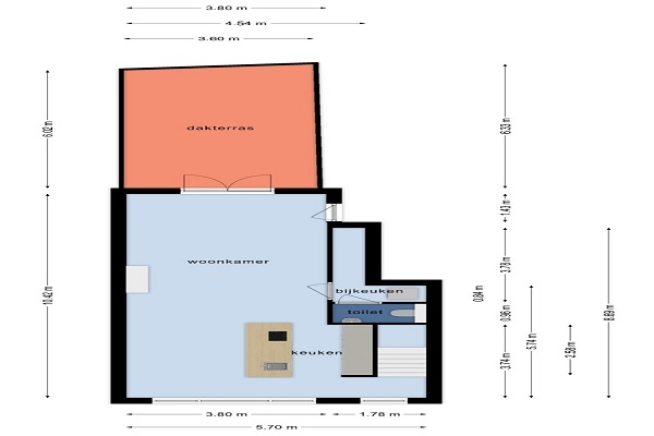 Indeling De gemeenschappelijke entree biedt toegang tot de verdiepingen van het appartementencomplex. Vanuit de hal heeft u toegang tot het portaal, waar een trapopgang naar de eerste verdieping leidt. Op de eerste verdieping bevindt zich de toegangstrap naar de woning. Bij binnenkomst via het portaal komt u direct bij de trap naar de woning en de slaapkamer. Deze slaapkamer is voorzien van een open badkamer en biedt toegang tot een zonnig balkon. De slaapkamer op deze verdieping is ruim en licht, en grenst aan de open badkamer met inloopdouche en wastafel met meubel. Het balkon aan de slaapkamer biedt een prachtig uitzicht en veel zonlicht. Op dezelfde etage bevindt zich ook een apart toilet, volledig betegeld met moderne accessoires. Via de vaste trap bereikt u de woonkamer. Deze is licht en ruim, met een open indeling. De woonkamer heeft een prachtig uitzicht en biedt veel ruimte voor een zithoek. De open keuken is luxe en voorzien van een kookeiland en diverse inbouwapparatuur, waaronder een kookplaat, oven, koelkast en vaatwasser. Het is een perfecte ruimte voor zowel koken