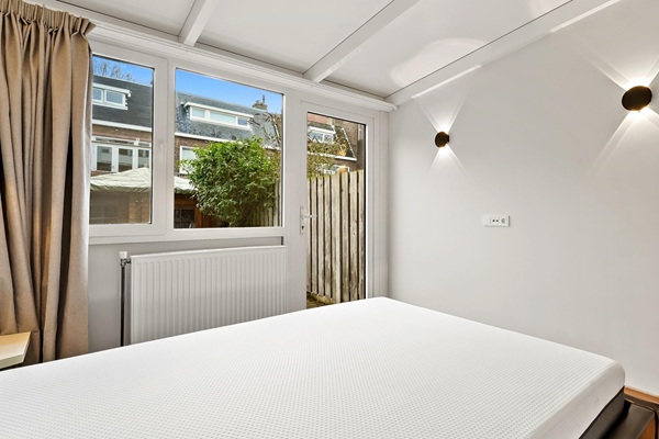 Indeling: Begane grond Via de voortuin betreed je de woning. De hal geeft toegang tot alle vertrekken en is voorzien van een nette afwerking. De royale en lichte woon-/eetkamer beschikt over een prachtige lamelparketvloer en staat aan de achterzijde open in verbinding met de serre en uitbouw, waar zich de nieuwe, moderne open keuken bevindt. De keuken is volledig uitgerust met hoogwaardige inbouwapparatuur en vormt het hart van de woning. Vanuit de serre is er toegang tot de zonnige achtertuin, ideaal om te ontspannen. Aan de voorzijde is HR+++ glas geplaatst, aan de achterzijde dubbel glas. De woning telt twee slaapkamers, waarvan de master bedroom is voorzien van een inloopkast. De tweede slaapkamer is uitstekend geschikt als logeerkamer, kinderkamer of werkkamer. De luxe badkamer is modern uitgevoerd en beschikt over zowel een inloopdouche als een ligbad, een nieuw badkamermeubel en extra kastruimte. Daarnaast is er een separaat toilet en een aparte was-/provisieruimte met aansluitingen voor wasmachine en extra bergruimte. Geen studenten/woningdelers;
