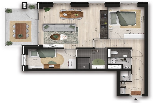 Onze ruime en eigentijdse appartementen bieden alles wat je zoekt in een nieuwe huis. De woonkamer met open keuken is licht en strak afgewerkt, via de woonkamer stap je zo je eigen privé balkon op van maar liefst 12m2. De keuken is uitgerust met luxe inbouwapparatuur waaronder een vaatwasser, combi oven magnetron, koelkast, vriezer, inductiekookplaat en afzuigkap. De woning beschikt over een extra ruimte waar de wasmachine en droger kan worden geïnstalleerd, de badkamer heeft een dubbele wastafel en inloopdouche. Ook is er een handig extra separaat toilet zodat gasten niet het toilet in de badkamer hoeven te gebruiken. Geen gedoe meer met het zoeken naar parkeerplekken! Het appartement wordt geleverd met een eigen, genummerde parkeerplaats, zodat je altijd verzekerd bent van een veilige plek voor je auto. Het complex is uitgerust met een innovatieve Bringme Box, waarmee je eenvoudig pakketten kunt ontvangen, retourneren en verzenden.