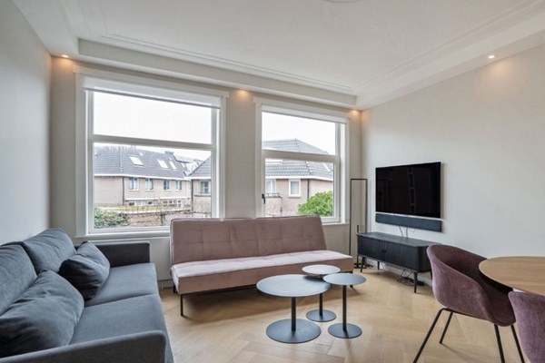 Indeling: Via de trap bereik je de entree van het appartement op de eerste etage. Vanuit de hal stap je de ruime, lichte woonkamer binnen. In de doorloop naar de keuken bevinden zich aan beide zijden vaste kasten. De moderne open keuken is uitgerust met hoogwaardige apparatuur, waaronder een inductiekookplaat met geïntegreerde afzuiging, een ruime spoelbak, combi-oven, koelkast en vriezer. Vanuit de keuken geven openslaande deuren toegang tot het balkon op het zuiden. Het appartement beschikt over twee slaapkamers: één aan de voorzijde en één aan de achterzijde. De moderne badkamer is voorzien van een ruime inloopdouche en een dubbele wastafel. In de hal bevinden zich een separaat toilet in dezelfde stijl als de badkamer en een diepe bergkast met wasmachine.