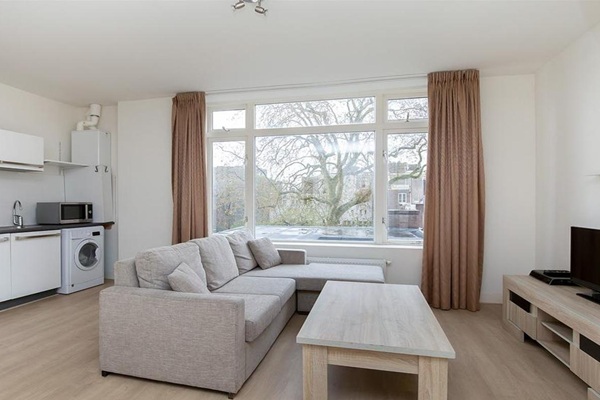 Niet om te delen. Indeling: Gezamenlijke entree naar de derde verdieping. Lichte en lichte woon- en eetkamer met meerdere grote ramen met uitzicht op de binnentuin. Volledig ingerichte open keuken. Twee slaapkamers met kastruimte of een inbouwkast. Moderne badkamer met inloopdouche en wastafelmeubel. Apart toilet. Een trap leidt naar het ruime en zonnige dakterras. Bij voorkeur te huur voor expats met voorafgaande toestemming van de eigenaren.