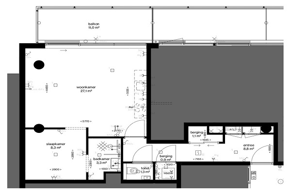Indeling Gesloten entree met toegang tot het bellentableau, de brievenbussen en de liften. Via de trapopgang of liften bereikt u de bovengelegen verdiepingen. Vanuit de hal is er toegang tot alle vertrekken. In de gang bevindt zich een klein berghok waar wasmachine uitsluiting zit, daarnaast bevindt zich het toilet met fonteintje. De open keuken is voorzien van een vaatwasser, oven, inductieplaat en koelkast. De woonkamer is ruim opgezet en geniet van veel lichtinval dankzij de grote raampartijen en het balkon aan de achterzijde van het complex. Aansluitend ligt de slaapkamer, die in open verbinding staat met de woonkamer via een open doorgang. De badkamer is voorzien van een wastafel met wastafelmeubel en douche. De is niet geschikt voor delers