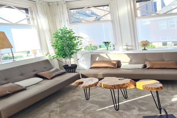 1 tweepersoonsbed + 2 slaapbanken voor het geval er gasten zijn. Het appartement bestaat uit twee verdiepingen (eerste verdieping en de tweede – en tevens bovenste – verdieping) en heeft een eigen privé-entree met garderobe en meterkast. De eerste verdieping is bereikbaar via een vaste trap. De hal biedt toegang tot een ruime woonkamer, voorzien van een eettafel voor 4 personen met 4 stoelen, 2 slaapbanken, een tv en een decoratieve open haard. Deze ruimte is bijzonder licht dankzij zes grote originele schuiframen. Op dezelfde verdieping bevinden zich: een gezellige keuken, volledig uitgerust met een moderne koelkast, vaatwasser, elektrische oven, magnetron, een 4-pits gasfornuis met afzuigkap, en waterkoker, evenals een bartafel voor 4 personen met 4 krukken; een wasruimte met wasmachine en droger van de beste en meest efficiënte energieklasse die momenteel op de markt is; en een nette aparte toiletruimte. Op de tweede verdieping, bereikbaar via de vaste trap, bevindt zich een slaapkamer voor twee personen met een kledingkast en twee ladekasten, met directe toegang tot een privébalkon. Dit balkon is ingericht met 2 rotan loungesofa’s en planten. Het balkon biedt veel privacy en is een heerlijke plek om buiten te zitten. Op dezelfde verdieping bevinden zich tevens een ruime badkamer, volledig betegeld en voorzien van een ligbad met douche, wastafel, toilet, radiator en mechanische ventilatie; een gang met meerdere handige inbouwkasten; en de ruimte voor de centrale verwarming, afgesloten in een aparte ruimte. De woning is voorzien van rolluiken op de eerste verdieping en dubbel glas op de tweede verdieping. Op elke verdieping zijn rook- en koolmonoxidemelders en brandblussers aanwezig. Het appartement beschikt over een berging voor afval op de begane grond, gelegen aan