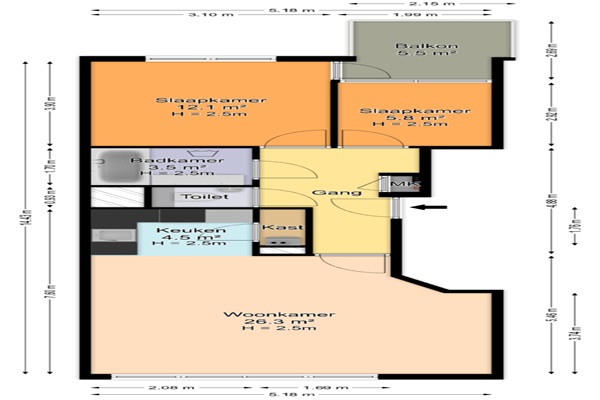 Indeling Gesloten gemeenschappelijke entree. Lift. Entree appartement op de 1e verdieping. Hal. De lichte woon-/eetkamer vormt samen met de nieuwe open keuken een prettige leefruimte. De semi open keuken is modern uitgevoerd en voorzien van diverse inbouwapparatuur. Het appartement beschikt over twee goed bemeten slaapkamers met vaste kasten aan de achterkant. Vanuit de hoofdslaapkamer is er toegang tot het ruime balkon, een fijne buitenruimte aan de achterkant. De badkamer is compleet uitgevoerd en beschikt over een ligbad, dubbele wastafel en een aansluiting voor de wasmachine/droger. Apart toilet met fonteintje. De afgesloten berging bevindt zich in de onderbouw. Maximaal 2 woningdelers