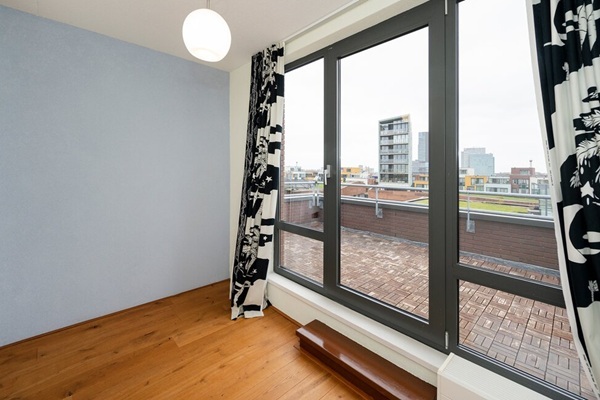 Indeling Centrale entree met bellentableau/videofoon, brievenbussen, gesloten portiek met trapopgang en twee liften. Vanuit de lift loopt u naar de knusse voortuin. Eenmaal in de woning treft u als eerste de ruime hal met de meterkast, de privé-berging en wasmachine ruimte aan. Op de begane grond bevindt zich een ruime slaapkamer van circa 20m2. Tevens bevindt zich hier ook de eerste badkamer met dubbele wastafel, douche, ligbad en een separate toilet. Op deze verdieping vindt u de woonkamer en de keuken. De keuken is voorzien van een koelkast, vaatwasser, combimagnetron, afzuigkap en een inductiekookplaat. Vanuit de woonkamer heeft u een fraai uitzicht en toegang tot het balkon. Via de trap komt u op de overloop van de tweede verdieping. Deze verdieping heeft twee slaapkamers. De kleinste kamer biedt toegang tot een ruim dakterras welke aan de voorzijde van de woning is gelegen. Op deze verdieping is een tweede badkamer aanwezig. Deze badkamer is voorzien van een toilet, wastafel en douche.