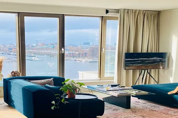 Luxe gemeubileerd appartement van 80 m². -Prachtig uitzicht over Amsterdam en de zonsondergang -Goed geïsoleerd en voorzien van vloerverwarming of -koeling -Moderne, volledig uitgeruste keuken; inductiekookplaat, combi-oven, Nespresso-apparaat, kwaliteitsmesjes en -pannen, enz. -Moderne badkamer; aparte douche en bad, apart toilet, dubbele wastafel -Ruim terras