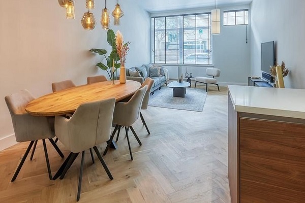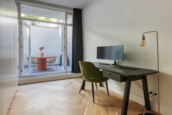 INDELING Gezamenlijke entree van het complex op de begane grond. Entree woning, direct binnenkomst in de luxe open keuken met gezellige bar in het hart van de woning. De keuken beschikt over alle benodigde apparatuur zoals gaskookplaat met afzuigkap, ruime ingebouwde oven, Quooker, vaatwasser en koelkast met aparte vriezer. De riante woonkamer is gelegen aan de voorzijde van de woning, met zeer smaakvol ingerichte zit- en eethoek. Dankzij de grote raampartijen is de woonkamer voorzien van veel natuurlijke lichtinval. De 2 slaapkamers zijn gelegen aan de achterzijde van het appartement, beide met dubbele deuren die toegang bieden tot de gezellige patio (oosten). De tweede slaapkamer is ingericht als home office, met extra kledingkast. De gang biedt verder toegang tot het separaat toilet met fonteintje, een aparte inloop kledingkast en een voorraadkast met achtergelegen was/voorraadruimte met was/droogcombinatie. Niet geschikt voor studenten/woningdelers