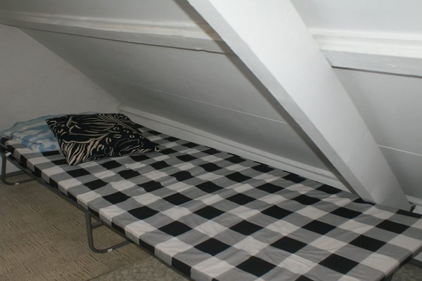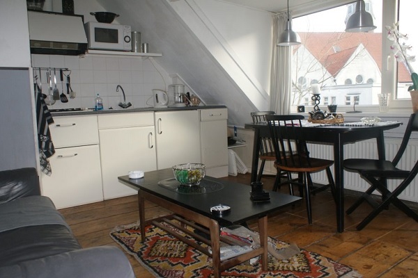 Ideaal voor het huisvesten van uw tijdelijke medewerkers bijvoorbeeld. Indeling: Via gezamenlijke entree en opgang naar boven betreedt u het appartement op de tweede verdieping. Aan de rechterzijde bevindt zich de gezellig woonkamer c.q. woonkeuken. Aan de linkerzijde treft u de ruime slaapkamer aan voorzien van twee- persoon bed en grote linnenkast. Op de overloop hebben we de badkamer voorzien van douche ruimte en was meubel inclusief wastafel. Het aparte toilet is direct geplaatst naast de badkamer. Via een vlizo trap is nog een extra slaapruimte gecreëerd.