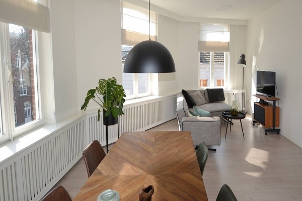 Middels de centrale hal met tussendeur brengt het trappenhuis u naar de 3de verdieping. Dit leuke op het Zuiden gelegen appartement beschikt over een hal (9m²), 2 slaapkamers (resp. 17,5m,² en 16,5m²), badkamer (4,5m²), gastentoilet (2,5m²) met fonteintje en ruime woonkamer (26,5m²) met half open keuken (10m²). De keuken is v.v. alle moderne apparatuur zoals 4 pits keramische kookplaat, afzuigkap, inbouw heteluchtoven, ijskast, diepvries (3 lades), vaatwasser en spoelbak met mengkraan. Vanuit de keuken is er een doorkijk naar de woonkamer. Naast de keuken treft u de inpandige berging (6m²) met CV installatie en aansluitingen voor witgoed. Door de zuidelijke ligging van de woonkamer en de vele raampartijen geniet u veel zonlicht. De tuinkamer (5,5m²) bereikt een binnen/buiten door te openen/af te sluiten raampanelen, u kunt hier heerlijk vertoeven. Deze woning is uitdrukkelijk niet bestemd voor woningdelers of studentenhuisvesting.