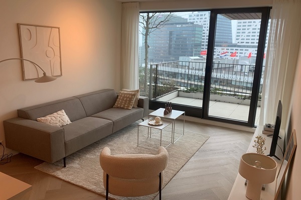 Dit 2-kamer appartement is gelegen op de 14e verdieping. Met 64m² woonoppervlakte, een externe berging (ca. 5m²) en een heerlijke ruim balkon (ca. 10m²) biedt dit appartement maximaal wooncomfort. Je betreedt het appartement via de ruime hal die toegang biedt tot alle ruimtes. Vanuit de woonkamer heb je via de schuifpui toegang tot het balkon met prachtig uitzicht. De luxe open keukenruimte is van alle gewenste inbouwapparatuur voorzien, te weten: afzuigkap, 4-pits inductie kookplaat, koelvriescombinatie, combimagnetron en vaatwasser. De ruime slaapkamer (ca. 16m²) is voorzien van inbouw kastruimte en biedt ook toegang tot het balkon. De badkamer heeft een ruime inloopdouche, wastafel inclusief wastafelmeubel, badkamerspiegel met verlichting en handdoekradiator. Het toilet is voorzien van een fonteintje en is separate. De riante technische ruimte is voorzien van een wasmachine en droger en biedt daarnaast ook nog eens voldoende opslagruimte. Tot slot is er nog een externe berging (ca. 5m²) in de gang/hal van de 4e verdieping aanwezig, voorzien van elektra. Profiel huur kandidaat: single of stel; werkend