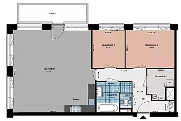 Dit 3-kamerappartement van circa 90 m² is gelegen in de Rivierenbuurt in Amsterdam. De woning beschikt over een ruime woonkamer met open keuken en directe toegang tot het balkon. De keuken is opgesteld langs de wand en biedt voldoende werk- en kastruimte. Het appartement telt twee slaapkamers, beide geschikt als volwaardige slaap- of werkkamer. De badkamer is centraal in de woning gesitueerd en voorzien van ligbad en wastafel. Het toilet is separaat bereikbaar vanuit de hal. Daarnaast is er een interne berging met ruimte voor wasmachine en droger. De woning heeft een efficiënte indeling met duidelijke scheiding tussen woon- en slaapgedeelte. Het balkon is gelegen aan de woonkamerzijde en biedt buitenruimte grenzend aan de leefruimte. De ligging in de Rivierenbuurt zorgt voor goede bereikbaarheid van voorzieningen, openbaar vervoer en uitvalswegen.