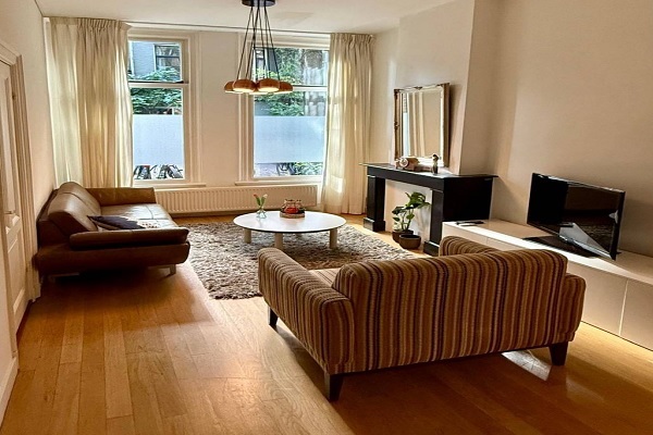 Indeling: Entree: aan de voorzijde bevindt zich de woonkamer. De half open keuken is voorzien van alle inbouwapparatuur met openslaande deuren naar de tuin. De badkamer is voorzien van een regendouche, wastafel en toilet. Aan de achterzijde bevindt zich de slaapkamer. Geweldig comfortabel appartement op een zeer mooie locatie!