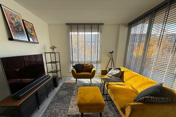Heerlijk licht en ruim hoekappartement van 76 m² met 2 slaapkamers, balkon op het zuiden van 7 m², moderne keuken en badkamer, strakke afwerking en een parkeerplaats en eigen berging! Dit uitzonderlijk mooie appartement is gelegen in het appartementencomplex uit 2015 aan het Haroekoeplein, voorzien van supermarkten, gezellige winkels en een Bagels & Beans. In slechts enkele minuten fietst of loopt u naar de Kanaalstraat, Park Oog in Al of het strand. Station Utrecht Centraal en de gezellige binnenstad liggen op slechts enkele fietsminuten. Je komt binnen via het bellentableau en de brievenbussen op het plein. De poort biedt vervolgens toegang tot de binnenplaats met de voordeur van het complex. Vervolgens brengt de trap of lift u naar de eerste verdieping. De appartementen zijn bereikbaar vanaf de galerij en dit appartement is gelegen aan het einde van de galerij. U komt binnen in de hal met de meterkast en toegang tot de slaapkamers, badkamer, toilet en woonkamer. Beide slaapkamers zijn gelegen aan de achterzijde van het pand. De badkamer is afgewerkt in een grijze en witte kleurstelling en beschikt over een ruime inloopdouche en een wastafel. Het toilet is separaat bereikbaar vanuit de gang en is uitgevoerd in dezelfde stijl als de badkamer. Aan de voorzijde van het appartement bevindt zich de ruime woonkamer, over de gehele breedte van het pand. Door de ligging aan de voorzijde heeft u een prachtig uitzicht op het plein en het water en de groene oevers van de Oude Rijn. Via schuifdeuren komt u op het heerlijke balkon, waar u van 's morgens vroeg tot 's avonds laat van de zon kunt genieten. De open keuken is modern en voorzien van een 4-pits inductiekookplaat, oven, koel-vriescombinatie, afzuigkap en vaatwasser. De woonkamer biedt toegang tot de berging waar zich de aansluitingen voor de wasapparatuur, de CV-ketel en voldoende bergruimte bevinden. Parkeerplaats. Aan de overkant van het complex vindt u het parkeerdek met uw eigen parkeerplaats. Voor de benodigde opslagruimte heeft u de beschikking over een eigen opslagruimte in de berging.