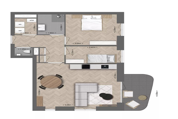 De open keuken heeft een frisse uitstraling en is uitgerust met onder andere een vaatwasser, afzuigkap en een koelkast met vriesvak. Handig voor een snelle maaltijd, maar ook prettig als je graag uitgebreider kookt. Het appartement heeft twee ruime slaapkamers. Dat maakt het geschikt voor een stel, een klein gezin of iemand die simpelweg extra ruimte wil voor werk of hobby’s. De badkamer is netjes en voorzien van een douche en wastafel.