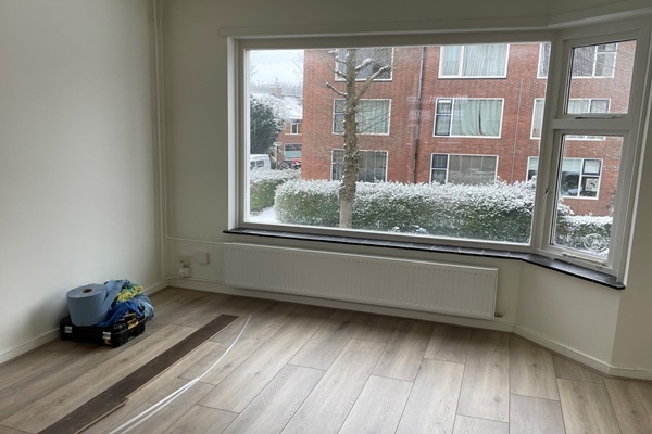 De woonkamer/eetkamer heeft een oppervlakte van 26,6m2. Tevens verleent de woonkamer toegang tot een klein balkon. Op de eerste verdieping zijn er twee slaapkamers met een oppervlakte van ca. 10,7m2 en 11,2m2. Ook is er een werk/studeerkamer met een oppervlakte van ca. 5m2. Het appartement beschikt ook over een zeer ruime zolderverdieping. De totale oppervlakte van het appartement is 97m2. Niet geschikt voor studenten