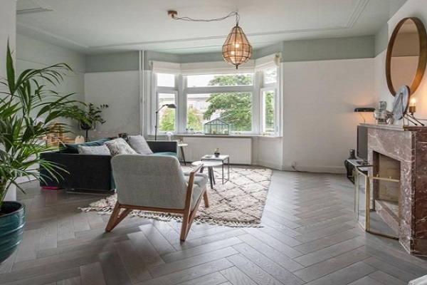 Indeling: Entree op begane grond, trap naar eerste verdieping. Eerste verdieping: Overloop voorzien van modern toilet. Zonnige woonkamer en suite met schuifseparatie met houtkachel en erker aan de voorzijde met uitzicht op de kade. Erker is voorzien van bamboe vouwgordijnen. Aan de achterzijde de zonnige eetkamer met zeer luxe open keuken met eiland inclusief bar (aanrecht en eiland voorzien van betonnen blad), diverse inbouwapparatuur waaronder inductie kookplaat, oven, koel-vriescombinatie, alsook een Grohe Red (kokend water) en Grohe Blue (gekoeld en/of bruisend water). Toegang via openslaande deuren tot het balkon over de volle breedte met uitzicht op bomen (hele jaar groen) wat de privacy verhoogt. De ramen en deuren zijn voorzien van op maat gemaakte houten shutters. De gehele eerste verdieping is voorzien van een eikenhouten visgraat vloer. Tweede verdieping: Overloop, modern toilet. Op deze verdieping verder 2 riante slaapkamers, waarvan de huidige ouderslaapkamer aan de achterzijde middels openslaande deuren toegang geeft tot het zonnig balkon (zuidwesten), gelegen over de volle breedte van het appartement. Tevens op deze etage een mooie moderne badkamer met ligbad, douche, designradiator, wastafelmeubel, wandkast en een 3e kleinere studeer/slaapkamer eveneens met openslaande deuren die toegang geven tot het zonnig balkon dat over de volle breedte ligt. Beide slaapkamers aan de achterzijde zijn voorzien van buitenzonwering (rolluiken). Aparte wasruimte, hier bevindt zich ook de toegang tot de ruime vliering (bereikbaar via vlizotrap).