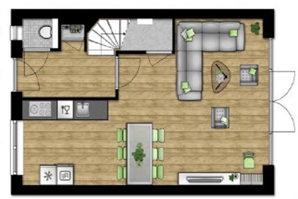 Begane grond In de hal vind je de toiletruimte, de meterkast en de trapopgang naar de eerste verdieping. Vanuit de ruime woonkamer met trapkast geven de openslaande deuren je toegang tot de achtertuin. De luxe keuken is uitgevoerd met een 5-pits inductiekookplaat, afzuigkap, koelkast, vaatwasser, combimagnetron en een natuurstenen werkblad. 1e Verdieping Vanaf de overloop bereik je 3 slaapkamers en de badkamer met inloopdouche, wastafel en een tweede toilet. 2e Verdieping De ruime zolder is bereikbaar via een vaste trap, waardoor deze ruimte volop mogelijkheden biedt als hobbyruimte of als werk- of studeerkamer. Ook vind je hier de witgoedaansluitingen.