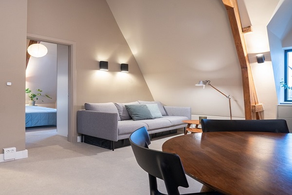 Indeling: Begane grond: Trappenhuis naar de verdieping. Het appartement is gelegen op de vierde etage. Vierde verdieping: Gezamenlijke hal met wasmachine en droger (deze deel je met 1 persoon). Entree appartement, hal met garderobe, separaat toilet, sfeervolle woonkamer welke is ingericht met smaakvol design meubilair en authentieke details zijn behouden, open moderne keuken voorzien van diverse inbouwapparatuur zoals: koelkast, vaatwasser, 2-pits kookfornuis en magnetron. De moderne badkamer is vanuit de woonkamer bereikbaar, welke is voorzien van luxe douche en wastafel. Vanuit de woonkamer loop je door naar de lichte Masterbedroom, in deze Masterbedroom is een werkplek aanwezig zodat je makkelijk vanuit huis kunt werken. Ook is er aan extra ruimte gedacht, er is namelijk een ruime vide gecreëerd in de kamer zodat er eventueel een extra ''tweede'' slaapplek is voor gasten of kunt gebruiken als bijvoorbeeld opslag.