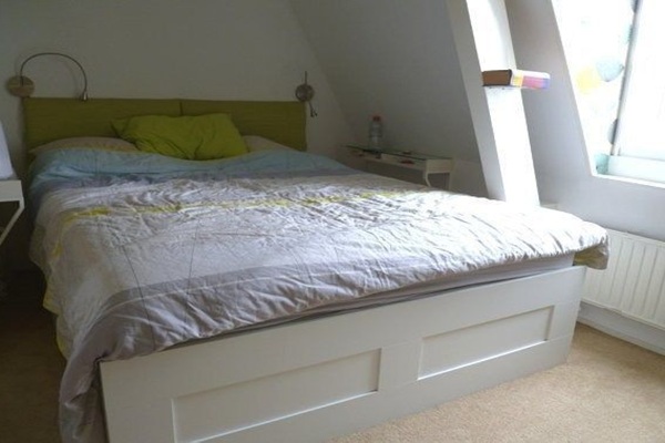 Entree, hal met toilet en toegang tot ruime lichte woonkamer met houten vloer en openslaande deuren naar de mooie tuin. Aan de voorzijde van de woonkamer is de eettafel.d. Achterin de strak moderne keuken van hoogglans grijs met vaatwasser, 4 pits inductie kookplaat oven en aparte micro wave etc. Inpandige berging met wasmachine en droger. Vanuit de woonkamer een open trap naar de slaapverdieping. Bovenverdieping met aan de voorzijde een ruime slaapkamer met 2 persoon bed en aan de achterkant de logeerkamer met kastruimte en slaapbank. Ruime moderne badkamer met douchecabine, wastafel met meubel en 2e toilet. -Geschikt voor stel / geen kinderen!