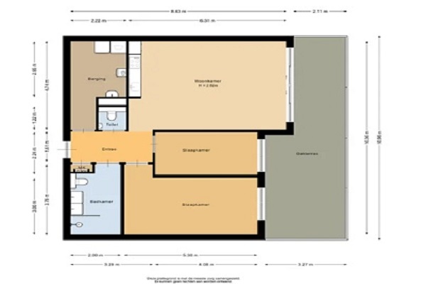 WONINGINDELING Algemeen: - Entree met bellentableau; - Trapopgang of lift naar verdiepingen. Appartement (gelegen op begane grond): - Entree; - Hal met voldoende ruimte voor een garderobe; - Woonkamer met open keuken voorzien van diverse inbouwapparatuur waaronder vaatwasser, koelkast, kookplaat met afzuigkap en combimagnetron/oven; - (Deels) betegelde toiletruimte met zwevend toilet en fonteintje; - (Deels) betegelde badkamer voorzien van inloopdouche, zwevend toilet, wastafelmeubel met spiegel en handdoekradiator; - Slaapkamer 1; - Slaapkamer 2; - Berging voorzien van aansluitingen ten behoeve van wasapparatuur en technische installaties; - Terras. Het appartement is tevens voorzien van een externe berging en parkeerplaats in de onder het complex gelegen parkeergarage.