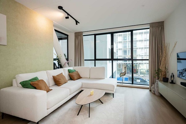 INDELING Begane grond: Bellentableau/Intercom, brievenbussen, trappenhuis, lift. 1e verdieping: Via de entree zijn alle vertrekken van het appartement bereikbaar. De lichte woonkamer is aan de achterzijde van de woning gesitueerd en afgewerkt met een nette laminaatvloer. De moderne keuken is voorzien van diverse inbouwapparatuur, waaronder een combi-oven, inductiekookplaat met geïntegreerde afzuiging en een koelkast. De slaapkamer bevindt zich eveneens aan de achterzijde en biedt toegang tot de loggia. De loggia kan volledig worden opengeschoven, waardoor deze verandert in een fijn buitenbalkon. De badkamer is volledig betegeld en uitgerust met een inloopdouche en wastafelmeubel. Daarnaast beschikt het appartement over een aparte ruimte voor de wasmachine en droger, met extra opbergmogelijkheden. Het toilet is separaat. De gehele woning is voorzien van vloerwarming en koeling waardoor u het hele jaar door klimaatbeheersing heeft.