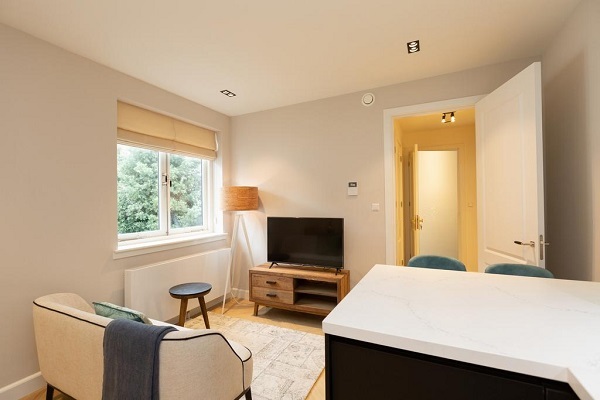 Indeling: Entree op straatniveau. Voordeur bevindt zich op de eerste verdieping. Toegang tot de gang, van waaruit alle vertrekken te bereiken zijn. Open woonkamer met veel raampartijen en open keuken. Keuken is voorzien van diverse apparatuur, waaronder een combi-oven. Een lichte slaapkamer met badkamer voorzien van een regendouche. Bergingsruimte onder de trap.