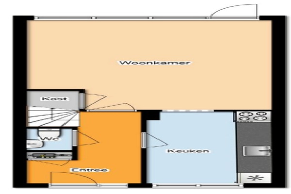 GESCHIKT VOOR EEN WERKEND(E) EXPAT SINGLE / STEL / FAMILIE Indeling Begane grond Via de voortuin bereikt u de eigen entree met hal en gastentoilet. De halfopen keuken is voorzien van alle benodigde (inbouw)apparatuur. De tuingerichte woonkamer is licht en ruim, en biedt via openslaande deuren direct toegang tot de achtertuin op het noordwesten, een fijne plek aan het water om tot rust te komen. Aan de voorzijde van de woning bevindt zich een praktische externe berging. Eerste verdieping Overloop met toegang tot twee ruime slaapkamers en de badkamer. De hoofdslaapkamer (ca. 15 m²) ligt aan de rustige achterzijde van de woning. De tweede slaapkamer bevindt zich aan de voorzijde. De centraal gelegen badkamer is uitgerust met een douche, wastafel, tweede toilet en aansluiting voor wasmachine en droger.