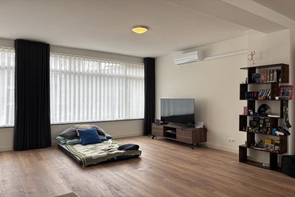 Begane grond: Via de voordeur komt u in de gezamenlijke hal ( 2 appartementen) waar zich de meterkast bevindt en u via de vaste trap naar boven uw appartement bereikt. Verder is er een afgesloten gezamenlijke fietsenberging (aparte ingang). 1e verdieping: Een grote U-vormige woonkamer met open luxe keuken (48,5 m2) met diverse inbouwapparatuur (vaatwasser, magnetron/oven, koelkast, inductiekookplaat met afzuigkap en een Quooker). De woonkamer is voorzien van 2 airco’s ( warm/koud) en is geheel gestoffeerd (glas- en overgordijnen, verlichting en laminaatvloer). Tevens geeft de woonkamer toegang tot een groot dakterras aan de achterzijde (22,17 m2) Geheel betegeld toilet met fonteintje. Trapopgang met vaste trap naar de 2e verdieping. 2e verdieping: Overloop welke toegang geeft tot de 3 slaapkamers, luxe badkamer en een aparte wasruimte met toilet. Slaapkamer 1 (9.29 m2) voorzien van airco (warm/koud) en geheel gestoffeerd (glas- en overgordijnen, verlichting en laminaatvloer). Slaapkamer 2 (8,71 m2) voorzien van airco (warm/koud) en geheel gestoffeerd (glas- en overgordijnen, verlichting en laminaatvloer). Slaapkamer 3 (15,02 m2) voorzien van airco (warm/koud) en geheel gestoffeerd (glas- en overgordijnen, verlichting en laminaatvloer). Tevens geeft deze slaapkamer toegang tot het balkon (7,35 m2) Luxe geheel betegelde badkamer (8,67 m2) voorzien van ligbad, inloopdouche, wastafelkast + spiegel, design-handdoekradiator, luxaflex en verlichting. Geheel betegelde wasruimte met toilet (2,94 m2) Bergzolder: Manshoge bergzolder is te bereiken via een vlizotrap op de overloop en voorzien van verlichting en tapijttegels.