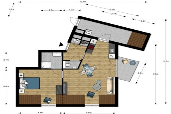 Parkeergarage met eigen parkeerplaats. Algemene toegangshal met bellentableau en postkasten. De hal geeft toegang tot de berging, de toiletruimte en de woonkamer met veel lichtinval en toegang tot het balkon. De open luxe keuken is voorzien van een vaatwasser, combi-oven, kookplaat en koelkast. Het geheel is afgewerkt met een mooi werkblad. Vanuit de slaapkamer heb je doorgang tot de luxe badkamer die is voorzien van een douche en een wastafel. In de berging vind je de aansluitingen voor het witgoed.