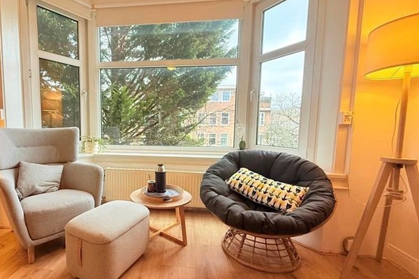 Dit lichte en gezellige appartement is werkelijk uniek en biedt flexibel wonen over twee niveaus. De belangrijkste woonruimte bevindt zich op de tweede verdieping en beschikt over een prachtig vormgegeven ruimte met grote ramen, een eethoek en een aparte lounge die eenvoudig aan uw wensen kan worden aangepast. De keuken is gelegen aan de achterzijde van het appartement en biedt toegang tot het balkon, waar zich de wasfaciliteiten bevinden. Tevens biedt deze verdieping twee goed bemeten slaapkamers, beide met toegang tot het balkon, en een badkamer en suite bij de masterbedroom. Het appartement ligt in een rustige en gezellige buurt. Op de begane grond is de voormalige berging volledig gerenoveerd tot een zelfstandige studio, compleet met een tweede badkamer, verwarming, een koelkast met vriesvak en een slaapbank voor de gasten. Deze veelzijdige ruimte is ideaal als thuiskantoor, gastenverblijf of voor stellen die allebei vanuit huis werken en de voorkeur geven aan aparte ruimtes. •Delen bespreekbaar voor twee professioneel werkende mensen •Geen borgstellers, de huurder dient de huur zelf te kunnen betalen •Kinderen toegestaan