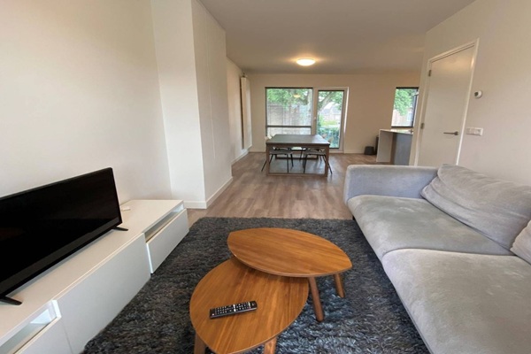 Indeling: Entree in het appartement op de begane grond met trapopgang naar de verdieping. Overloop met toegang tot de woonkamer, separaat toilet, wasruimte en trapopgang naar de tweede verdieping. Entree in woonkamer met open keuken gesitueerd aan de voorzijde. De woonkamer is ca. 35 m². Luxe keuken voorzien van vaatwasser, 5-pits gasfornuis, koelkast, vriezer, afzuigkap en combi oven magnetron. De woonkamer geeft aan de achterzijde toegang tot zeer ruim dakterras van ca. 15 m². Trapopgang naar de tweede verdieping met overloop die toegang geeft tot alle ruimtes. Luxe ruime badkamer voorzien van inloopdouche en wastafel met meubel. De badkamer is gelegen aan de achterzijde van woning. Beide slaapkamers liggen aan de voorzijde van de woning. Slaapkamer 1 van ca. 10 m². Slaapkamer 2 van ca. 6 m². Het gehele object is voorzien van PVC vloer en de badkamer, toilet en wasruimte zijn betegeld.