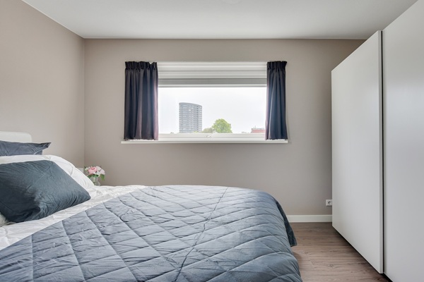 Indeling Gezamenlijke entree met intercom, brievenbussen en trapopgang naar de 1e verdieping. Tweede verdieping Via de galerij loopt u naar de gezamenlijke entree voor een tweetal appartementen. Eén op de eerste verdieping en één op de tweede verdieping. De gezamenlijke hal is voorzien van eigen meterkast, cv opstelling en internetmodem. Tevens kunt u vanuit de galerij naar de gezamenlijke berging en de afgesloten parkeergarage in de kelder. Vanuit uw eigen voordeur treedt u de hal binnen welke toegang geeft tot de woonkamer, de slaapkamer en badkamer. Vanuit de hal hebt u ook toegang tot de deels betegelde toiletruimte met zwevend closet. Het gehele appartement is voorzien van luxe donker houten pvc vloer. De woonkamer en eethoek is volledig ingericht en voorzien van smart tv, internet en strakke wand- en plafondafwerking. Tevens geniet de woonkamer van veel lichtinval middels de grote raampartijen en vrij uitzicht. De moderne en luxe open keuken is van alle gemakken voorzien. Namelijk een 4-pits gaskookplaat, RVS afzuigkap, combimagnetron, koelkast met vriesvak lades, vaatwasser en alle inventaris die u nodig hebt in de keuken. De ruime slaapkamer met luxe tweepersoons boxspring, ruime kledingkast en een strakke wand- en plafondafwerking en een ruimte voor een werkplek. De slaapkamer met hoge raampartij zorgt voor veel lichtinval in deze ruimte. De geheel betegelde moderne badkamer is uitgerust met een regendouche en handdouche met thermostaatkraan, vaste wastafel met lades, wandkast, ligbad, designradiator, wasmachine en droger.