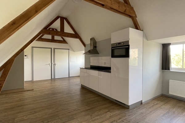 Indeling: Je komt binnen via de gezamenlijke entree van het nette appartementencomplex. Het appartement is gelegen op de tweede verdieping en bestaat zelf uit 1 woonlaag. Bij binnenkomst stap je in een ruime, lichte woonkamer met keuken. De keuken is voorzien van een koelkast, vaatwasser, oven en afzuigkap. De badkamer met douche en toilet grenst zich aan de woonkamer even als de slaapkamer.