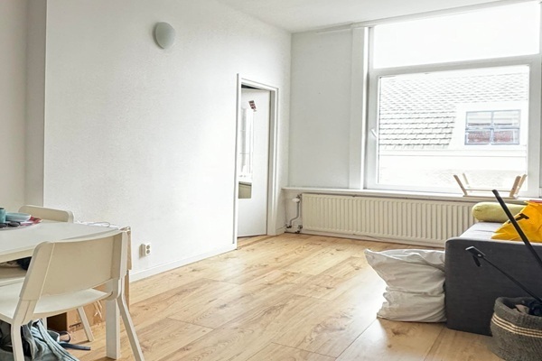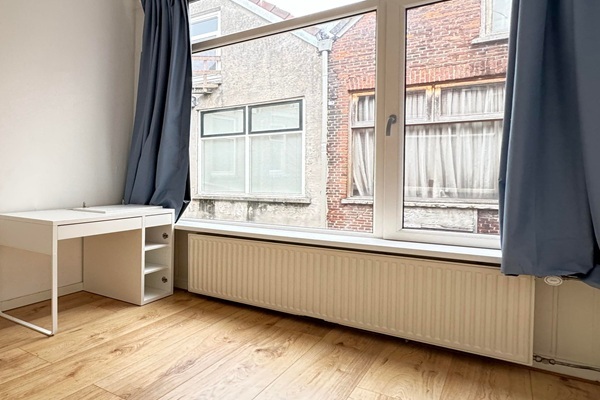 Bij binnenkomst betreed je direct de moderne, open keuken die naadloos overgaat in de lichte woonkamer. De keuken is volledig nieuw en uitgerust met hoogwaardige apparatuur zoals een koelkast, inductiekookplaat en afzuigkap. De woonkamer biedt een aangename, rechthoekige ruimte met hoge plafonds die zorgen voor een ruimtelijk gevoel. Dankzij de grote ramen is er volop natuurlijk licht en goede ventilatiemogelijkheden. Vanuit de woonkamer heb je toegang tot de eerste slaapkamer, die eveneens veel lichtinval geniet door de grote ramen. Aan de achterzijde van het appartement vind je de tweede slaapkamer, ook voorzien van een groot raam voor voldoende daglicht. De moderne badkamer, te bereiken via de keuken, is uitgerust met een ruime inloopdouche, wastafel en aansluitingen voor een wasmachine en droger. Daarnaast is er een separaat toilet.