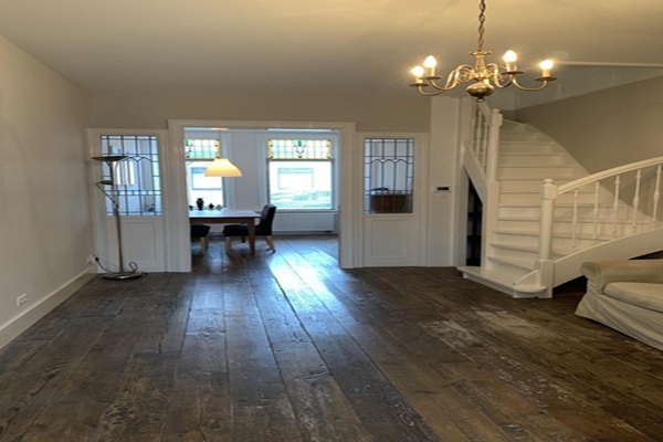 Gerenoveerd, gemeubileerd 3 kamer tussenwoning met achtertuin, met behoud van originele details. Via de monumentale deur komt men in de hal met gastentoilet en toegang tot de eetkamer en woonkamer, met glas-in-lood ramen en uitzicht op de achtertuin. Houten vloeren, hoge plafonds en veel licht geven dit huis een fijne atmosfeer en welkom gevoel. De keuken heeft inbouw apparatuur en aansluitend een bijkeuken met veel berguimte en wasmachine en droger. De nieuwe trap naar de slaapverdieping heeft opnieuw sfeervolle details. De 2 slaapkamers met ramen hebben beiden grote kasten en de nieuwe badkamer heeft een ruime inloopdouche, wastafel, decor radiator en een tweede toilet.