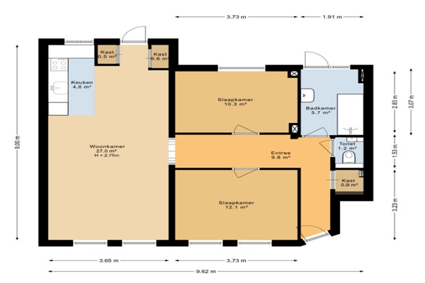 Indeling Entree met eigen voordeur. Binnekomst in de hal met een ruime bergkast, het aparte toilet met fonteintje. Via de hal heb je toegang tot alle ruimtes. De woonkamer met open keuken geeft toegang tot de tuin. De keuken is voorzien van een koel-vries combi, vaatwasser oven, inductie kookplaat en een afzuigkap. Een slaapkamer ligt aan de straatkant en de ander aan de tuinkant. De badkamer heeft een ligbad met douche en een wastafel en handdoekradiator. Woning is zeer geschikt om te delen. Geen garantsteller toegestaan.