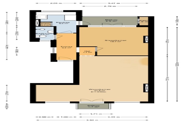 Het appartement bevindt zich op de derde verdieping. Bij binnenkomst is er aan de linkerkant een modern afzonderlijk toilet. Naast het toilet bevindt zich de badkamer, voorzien van een douche en wastafel, met toegang tot een gezellig balkon. Vanuit de gang kom je zowel in de ruime slaapkamer met een groot raam als in de woonkamer, die in een aparte kamer ligt en beschikt over een open, moderne keuken. De keuken is volledig uitgerust met inbouwapparatuur waaronder een combi-oven-magnetron, koelkast, inductiekookplaat, afzuigkap en vaatwasser.