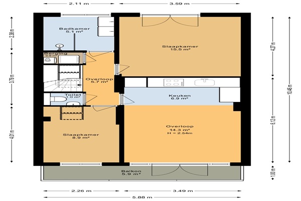 Het appartement ligt op de derde en tevens bovenste verdieping. Via een gedeelde entree kom je met de trap naar de derde verdieping. Je komt binnen in de hal welke toegang geeft tot alle ruimtes. In d ehal is een apart toilet met een fonteintje. De woonkamer met open keuken is licht en ruim. De keuken in voorzien van inbouwapparatuur zoals een koel-vries combinatie, gaskookplaat, combimagnteron, afzuigkap en een vaatwasser. Er zijn twee slaapkamers waardoor de woning ook geschikt is voor twee werkende delers. De badkamer heeft een douche, wastafel en een handoekradiator. Op dit moment wordt de woning verduurzaamd en krijgt daarmee een toekomstbestendig en energiezuiniger karakter. Deze verduurzaming zorgt niet alleen voor meer wooncomfort, maar ook voor lagere energielasten en een duurzamere manier van wonen in de populaire Rivierenbuurt.