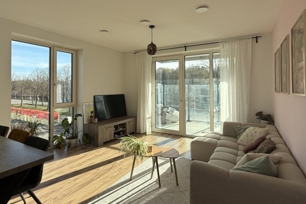 Indeling Je komt binnen in de hal met toegang tot de technische ruimte wat tevens ook als inpandige berging dient.. De woonkamer is voorzien van een moderne keuken die beschikt over inbouwapparatuur, waaronder een inductie kookplaat, combi oven/magnetron, afzuigkap, vries/koelcombinatie en vaatwasmachine. Dit appartement beschikt over twee aparte slaapkamers. De badkamer is uitgerust met een wastafel met spiegel, een handige douchewand en een handdoekradiator. Verder zit er een apart, zwevend toilet nabij de hal. Daarnaast heb je ook nog een een eigen privé buitenruimte!