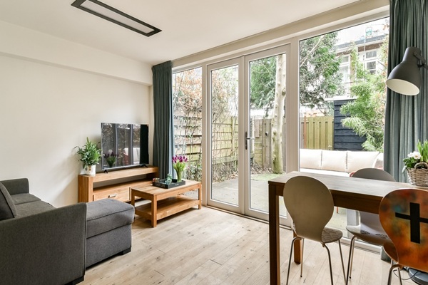 Het appartement bevindt zich op de begane grond en heeft een eigen entree. Entree in de hal. Vanuit de hal toegang tot vrijwel alle vertrekken, te weten: de woon/eetkamer, keuken, 2 slaapkamers, toilet, badkamer en de tuin. De woon/eetkamer bevindt zich in de uitbouw en geeft middels openslaande deuren toegang tot de ruime en zonnige tuin gesitueerd op het zuidwesten (middag/avondzon). De moderne keuken in ruime U-opstelling heeft voldoende kastruimte en diverse inbouwapparatuur (o. a. koel/vriescombinatie, Boretti gasfornuis inclusief oven en vaatwasser). De hoofdslaapkamer is van goed formaat en voorzien van diverse inbouwkasten en een tweepersoonsbed. De tweede slaapkamer is momenteel in gebruik als werkruimte en af te sluiten middels schuifdeuren. De badkamer is voorzien van een whirlpool bad met douche, wastafelmeubel en wasmachine. Separaat toilet aanwezig.