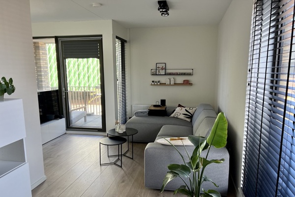 WONINGINDELING Deze unieke huurwoning beschikt over 2 woonlagen, een slaapkamer, een balkon, een eigen berging en een eigen parkeerplaats in de afgesloten parkeergarage. Onderstaand treft u een opsomming van de stadswoning: Begane grond: - Eigen prive parkeerplaats in de afgesloten, overdekte, parkeergarage; - Entree met ruimte voor garderobe, meterkast (voldoende groepen) en deels betegelde toiletruimte; - Trap met toegang tot eerste verdieping. Eerste verdieping: - Woonkamer (29,7m2) met fraai uitzicht; - Complete keuken voorzien van koelkast (met vriesvak), combi magentron-/oven, elektrische kookplaat, afzuigkap en vaatwasser; - Technische ruimte met opstelplaats CV-ketel; - Volledig betegelde badkamer met inloopdouche, vaste wastafel, toilet en designradiator; - Slaapkamer (9,3m2).