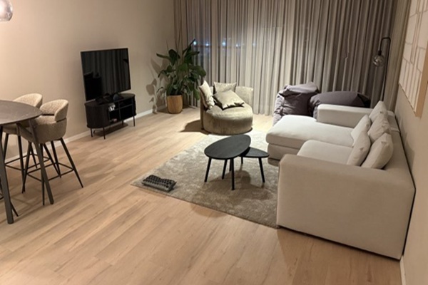 INDELING APPARTEMENTEN Algemeen: - Bellentableau met brievenbussen; - Trapopgang en lift naar verdiepingen. Appartement - Entree; - Hal met meterkast en voldoende ruimte voor een garderobe; - (Deels) betegelde toiletruimte voorzien van zwevend toilet en fonteintje; - Woonkamer met open keuken (in hoekopstelling) voorzien van diverse inbouwapparatuur waaronder koel-/vriescombinatie, combi-magnetron, inductiekookplaat, afzuigkap en vaatwasser; -Berging voorzien van aansluiting wasapparatuur - Technische ruimte voorzien van unit mechanische ventilatie; - (Deels) betegelde badkamer voorzien van douche en dubbele wastafel; - Slaapkamer 1; - Slaapkamer 2; - Balkon