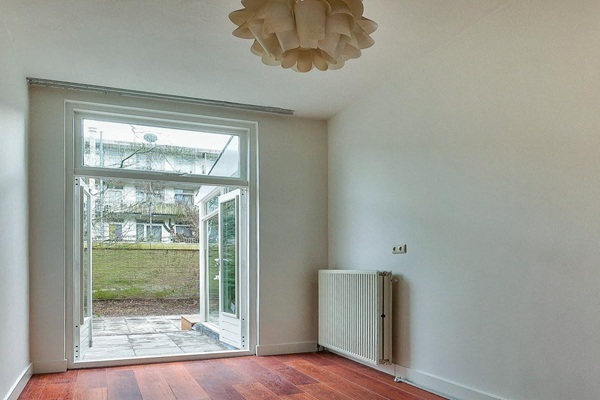 Indeling: Entree in de woning met eiegn voordeur. Via de hal kom je in de andere vertrekken. De woonkamer heeft nog de originele openslkaande deuren tussen de voor en de achterkamer. Beide hebben ook nog de schouw. Beide slaapkamers liggen aan de tuinkant en geven ook toegang tot de tuin. De keuken wordt geleverd met inbouwapparatuur zoals een afzuigkap, koelkast, inductiekookplaat en een vaatwasser. De badkamer is voorzien van een wastafel, douche en toilet. De roale achtertuin ligt op het zuiden. De woning wordt geleverd met een mooie vloer en heeft door de ramen aan de voor en achterzijde, veel lichtinval.