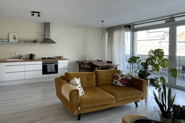 Indeling: Ruime entree met brievenbussen, intercom, liften, trapopgang en toegang naar parkeergarage, berging en gezamenlijke binnentuin. Entree, hal, meterkast en toegang naar alle vertrekken. Ruime woonkamer met schuifpui naar het balkon. De moderne, open keuken is voorzien van luxe inbouwapparatuur, zoals een 4-pits gaskookplaat, afzuigkap, oven, koelkast en vriezer. Twee lichte slaapkamers. Nette badkamer met douche, wastafel en designradiator. Separaat toilet met fontein en een ruime was- en bergruimte, met CV-combiketel en aansluiting voor wasmachine en droger.