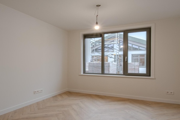 Indeling Via de centrale entree op de begane grond brengt de lift je naar het dakniveau, waar je uitkomt op het gezamenlijke dakterras en de voordeur van de woning. Binnen leidt de hal naar twee slaapkamers, de badkamer, een separaat toilet, een inpandige berging en de lichte woonkamer met open keuken. Vanuit de woonkamer heb je direct toegang tot het dakterras. De afwerking is hoogwaardig. De appartementen zijn voorzien van een PVC-visgraatvloer met vloerverwarming in alle ruimtes. De keuken is compleet uitgerust met inbouwapparatuur: kookplaat, combioven, vaatwasser, afzuigkap en koel-vriescombinatie.De badkamer is stijlvol uitgevoerd met een ligbad, inloopdouche, dubbele wastafel en handdoekradiator. Extra opbergruimte is aanwezig in de berging én op de vliering, waar ook de installaties zijn geplaatst.